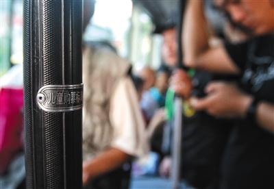7月12日,455路公交車上的兒童購票身高標識。