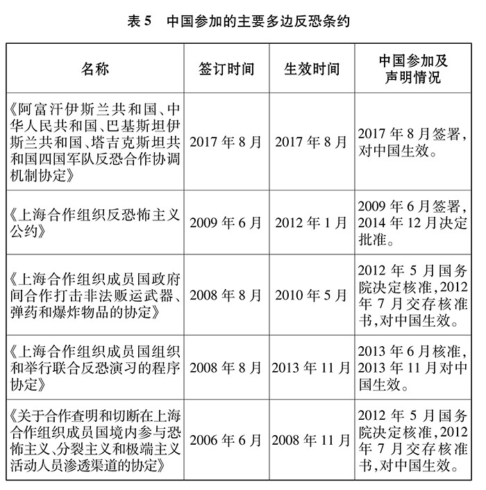 中國積極開展國際和地區反恐合作。加強上海合作組織框架內的國際反恐合作,組織開展反恐聯合演習,打擊非法販運武器、彈藥和爆炸物品,合作查明和切斷人員滲透渠道,推動國際反恐情報交流共享。主辦以反恐為主題的“長城”國際論壇,積極參與亞太經合組織反恐工作組、全球反恐論壇等多邊反恐機制。同有關國家舉行雙邊反恐磋商。推動創建阿富汗、中國、巴基斯坦、塔吉克斯坦四國軍隊反恐合作協調機制,舉行兩屆軍隊高級領導人會議,開展反恐交流合作,積極維護地區安全。