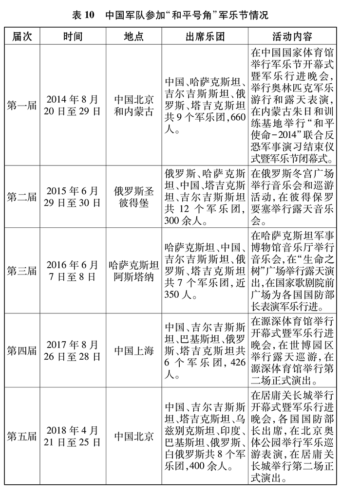 2001年6月,中國同哈薩克斯坦、吉爾吉斯斯坦、俄羅斯、塔吉克斯坦、烏茲別克斯坦共同發起成立上海合作組織。上海合作組織已成為世界上幅員最廣、人口最多的綜合性新型區域合作組織,形成互信、互利、平等、協商、尊重多樣文明、謀求共同發展的“上海精神”,推動構建上海合作組織命運共同體,推動建設新型國際關系,為地區和平與發展作出了新貢獻。2017年6月,上海合作組織首次擴員,印度和巴基斯坦成為上海合作組織成員國。2018年4月,舉行上海合作組織擴員后首次國防部長會議。上海合作組織成員國持續加強防務安全領域交流合作,舉行“和平使命”系列演習,舉辦“和平號角”軍樂節,深化睦鄰友好和戰略互信,加強軍事文化交流,增進成員國團結友誼。