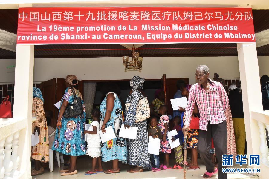 2019年8月3日,在喀麥隆姆巴爾馬尤,中國援喀麥隆醫療隊下鄉義診。 新華社發(讓·皮埃爾·科普索攝)