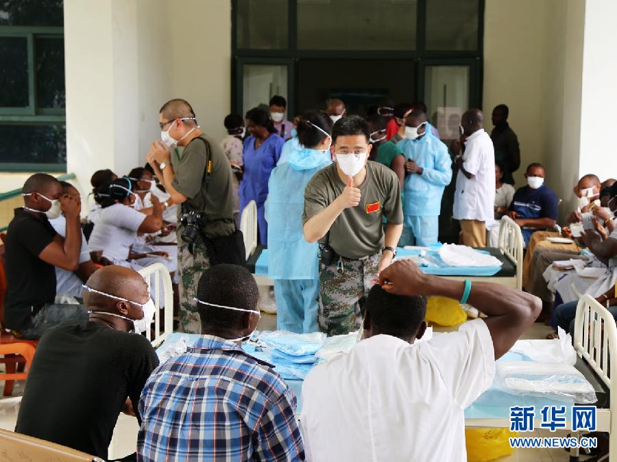 2014年12月10日,在塞拉利昂首都弗里敦,中國醫護人員在中塞友好醫院開展輸液培訓活動。新華社發(戴欣 攝)