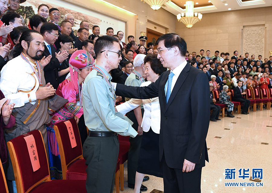 9月5日,第七屆全國道德模范座談會在北京舉行。中共中央政治局常委、中央書記處書記王滬寧會見受表彰代表。 新華社記者 饒愛民 攝