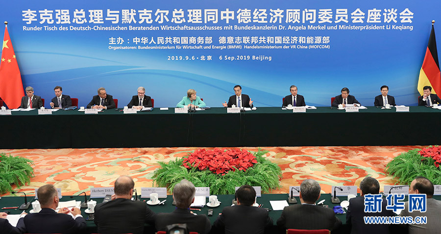 9月6日,國務院總理李克強在北京人民大會堂與德國總理默克爾共同出席中德經(jīng)濟顧問委員會座談會,并同與會代表交流。 新華社記者 丁海濤 攝