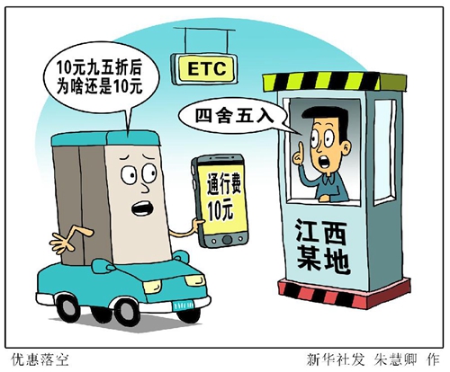 6日上午,國務院第七督查組驅車從南昌市出發(fā),來到70余公里外的共青城市。當車駛出ETC專用收費通道時,電子屏上顯示的收費金額是29元。收費站工作人員說,這段路程不走ETC通道通行費是30元。督查人員計算,30元打完九五折后應收28.5元,但被系統(tǒng)“四舍五入”收了29元。隨后,督查組又從共青城市前往德安縣,原價10元的通行費ETC折后依然收費10元,沒有享受到任何優(yōu)惠。