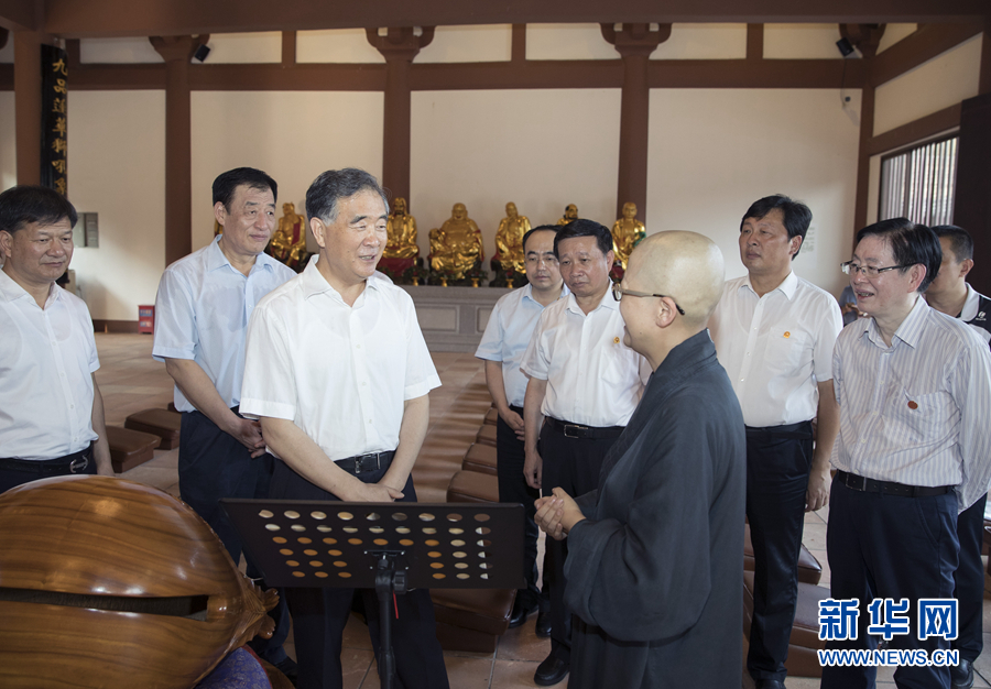 9月9日至10日,中共中央政治局常委、全國政協主席汪洋在江西調研宗教工作。這是9月9日,汪洋在宜黃縣曹山寶積寺與僧人交流。新華社記者 王曄 攝