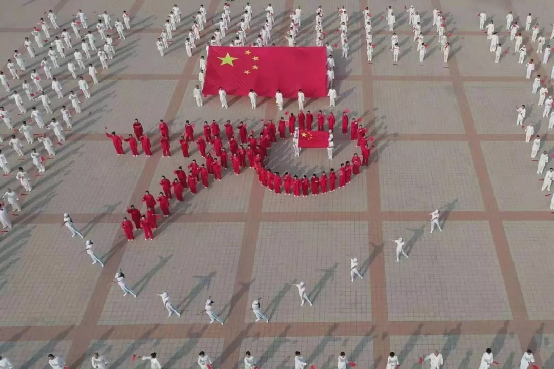2019年9月28日,河南濮陽。中原油田離退休管理處老年太極拳協會舉辦太極拳展示,慶祝中華人民共和國成立70周年。作者:楊煥文