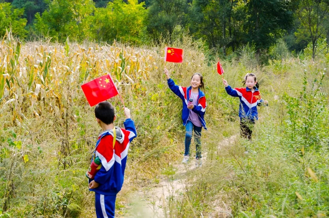 2019年9月29日,山西浮山。學校舉辦活動慶祝國慶節,孩子們午飯后迫不及待地跑去上學。作者:雪芳