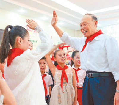 “團(tuán)結(jié)拼搏、負(fù)重奮進(jìn)、自加壓力、敢于爭(zhēng)先”。曾任江蘇省張家港市委書記的秦振華(見圖右一,龐瑞和攝)是“張家港精神”的塑造者。如今,年逾八旬的他是改革先鋒,是“最美奮斗者”。他還先后獲得全國優(yōu)秀縣(市)委書記、全國優(yōu)秀黨務(wù)工作者、全國離退休干部先進(jìn)個(gè)人等20多項(xiàng)國家級(jí)榮譽(yù)。