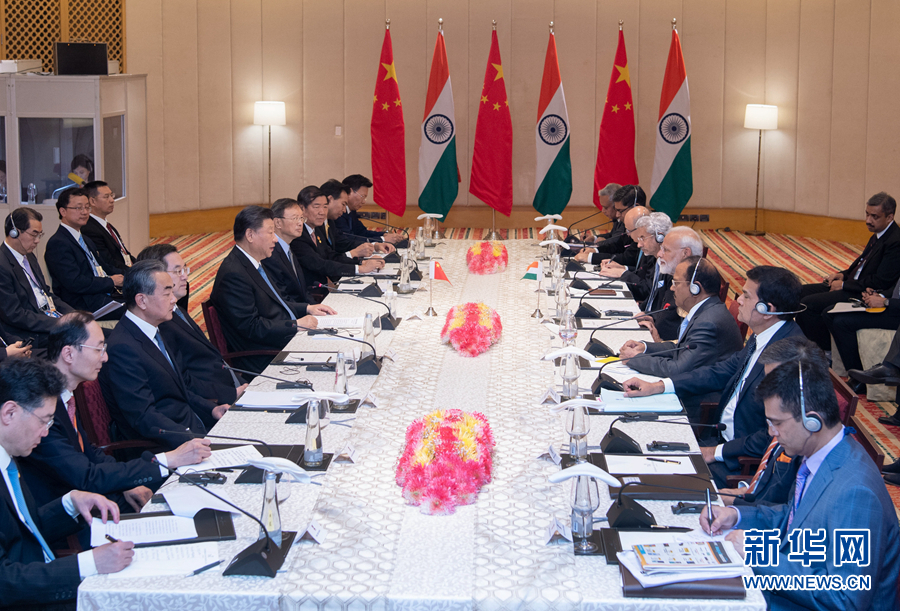 習近平指出,去年我和總理先生在武漢成功會晤以來,中印關系邁入健康穩定發展新階段,會晤的積極效應不斷顯現。中印互為重要鄰國,是僅有的兩個人口超過10億的大國。維護好、發展好中印關系,是中國堅定不移的政策。當前國際形勢下,中印在維護全球穩定和推動發展方面肩負著越來越重要的責任。未來幾年是中印實現民族復興的關鍵期,也是中印關系發展的關鍵期。我們要對中印關系把舵定向,從戰略高度和長遠角度規劃中印關系百年大計,為中印關系發展注入強勁內生動力,攜手實現中印兩大文明偉大復興。