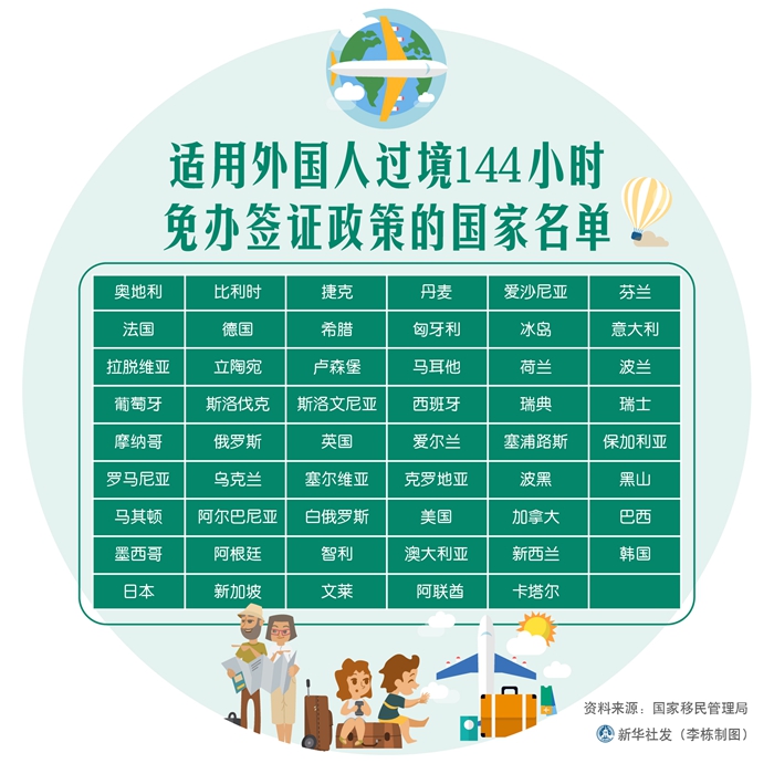附:適用外國人過境144小時免辦簽證政策的國家名單