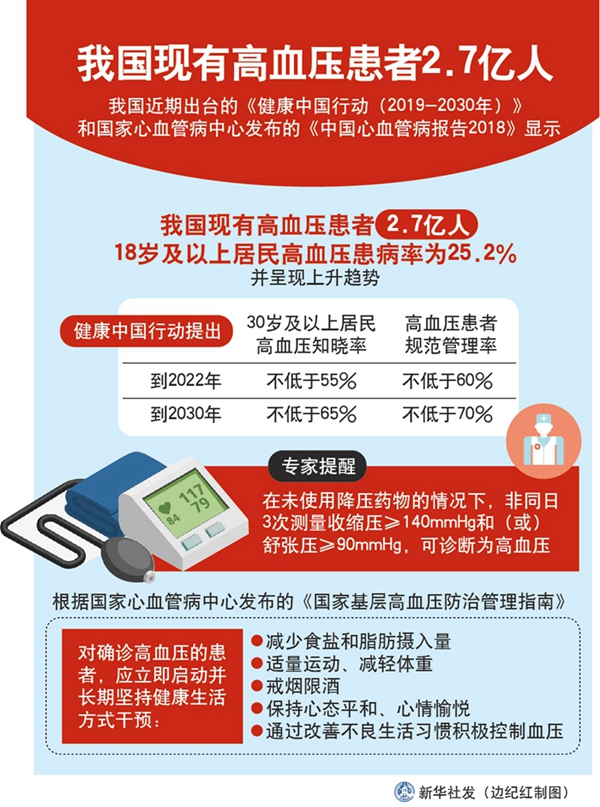 新華社北京10月24日電 題:我國高血壓患者2.7億 該如何穩住我們的血壓?