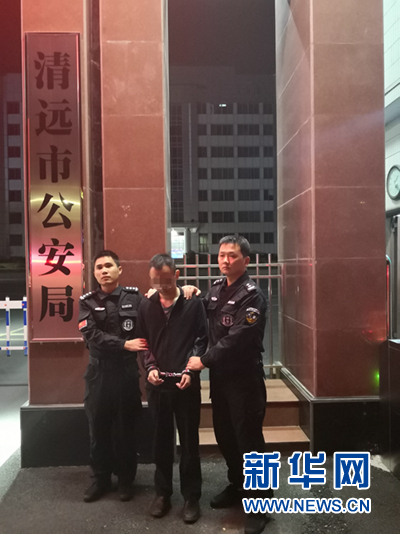 11月5日晚,A級通緝犯張立創到廣東清遠市公安局投案自首。新華社發(廣東省公安廳提供)