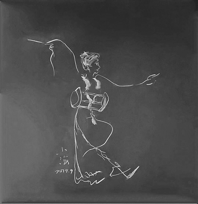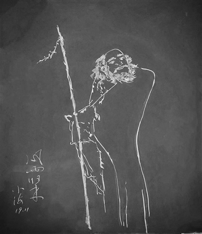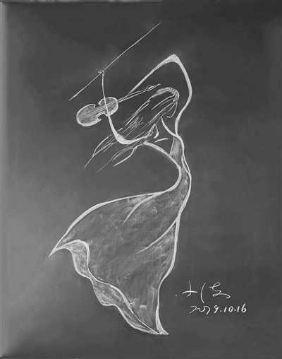 揚(yáng)子晚報(bào)記者注意到,這些用“數(shù)學(xué)語言”繪成的粉筆畫,有修長的女子,有年邁的老人,有頑皮的孩童,有淘氣的小貓;從動作上看,有的在遠(yuǎn)望,有的在賞花,有的在舞蹈,有的在拉琴,有的在采摘,有的在打球,有的在觀察小蟲;從色彩上看,有的只有白色或粉紅色一種顏色,有的有兩種顏色,但不超過三種顏色。無論是一種顏色還是有限的兩三種顏色,作品都生動傳神,幾條柔和的曲線稍作組合,寥寥數(shù)筆,就賦予了作品生命力,顯示了作者嫻熟高超的繪畫技巧。每幅畫的角落,有的還寫上了“童趣”、“采摘”、“風(fēng)雨歸來”、“運(yùn)動美”的標(biāo)題,每一幅畫都署名“小海”,行書字體也和畫面一樣流暢靈動。年近花甲的朱老師以“小”自稱,體現(xiàn)了他率真謙虛的性格和對工作的態(tài)度。