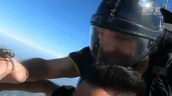 在山東,失去雙腿的青年成功挑戰跳傘,露出了燦爛的笑容。