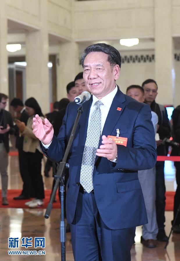 這是全國(guó)政協(xié)委員吳偉仁在“委員通道”接受采訪。 新華社記者 陳曄華 攝