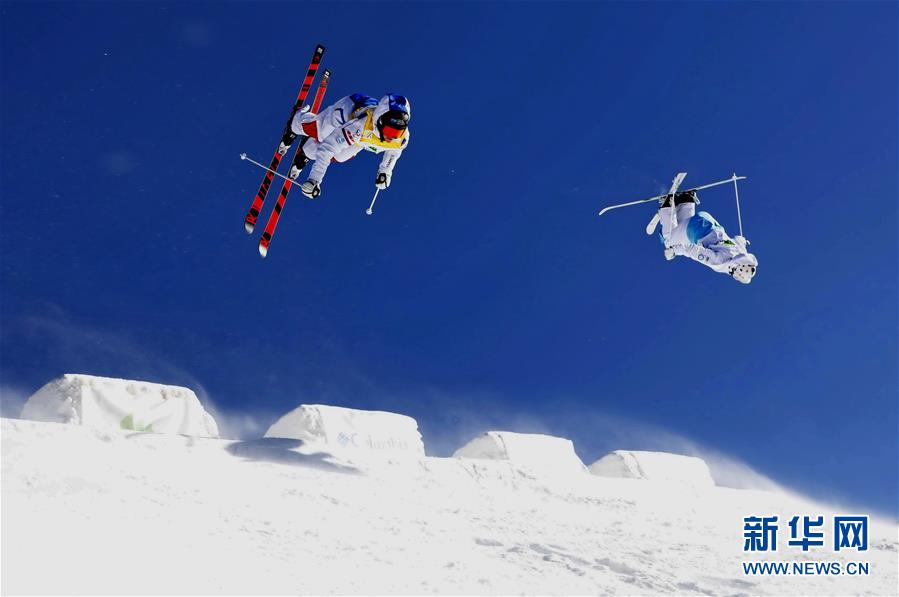 運動員在河北張家口市崇禮區太舞滑雪場參加自由式滑雪雪上技巧世界杯比賽(2018年12月16日攝)。新華社記者 楊世堯 攝