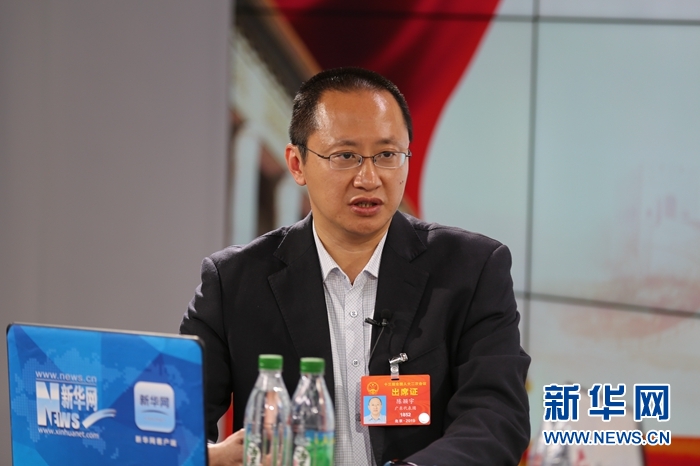 3月11日,全國人大代表、中國電信汕頭分公司國際海纜登陸站站長陳穎宇做客新華網(wǎng)2019全國兩會特別報道。新華網(wǎng) 毛嘉煒 攝