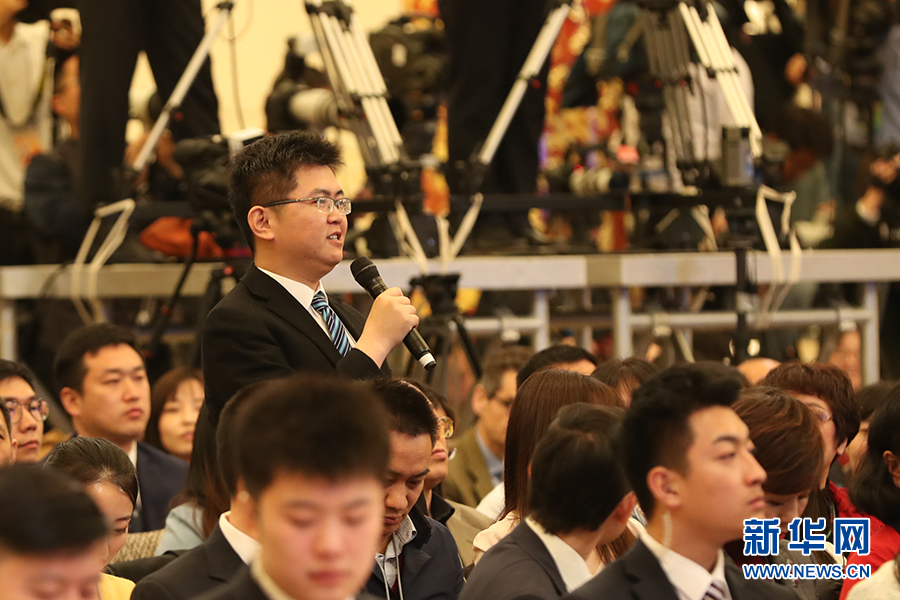 3月15日上午十三屆全國人大二次會議閉幕后,國務院總理李克強在人民大會堂三樓金色大廳會見采訪十三屆全國人大二次會議的中外記者并回答記者提出的問題。圖為人民日報記者提問。新華網/中國政府網?陳杰 攝