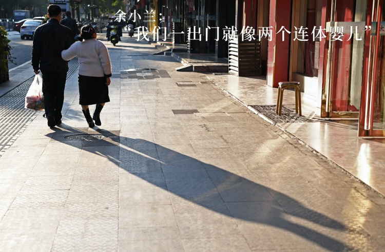 回家的前一天,夫妻倆忙完活后,相互攙扶著上街給家里人買年貨。一根盲杖,為夫妻二人指引著方向。