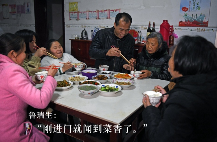 女兒和親戚們把老魯夫妻扶進了家門,80歲的老母親把飯菜又熱了一遍,一家人終于坐到了飯桌前……