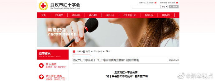 關于目前網絡上“山東壽光援助武漢350噸蔬菜,武漢市紅十字通過超市低價售賣”一事,武漢市紅十字會發表申明,詳情如下↓(記者王鵬) ????
