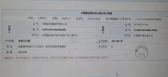 1月27日,太康縣首屆“最美退役軍人”、河南省四通鍋爐有限公司總經(jīng)理馮坤,在防控新型冠狀病毒感染肺炎的嚴(yán)峻斗爭(zhēng)中,主動(dòng)向武漢紅十字會(huì)捐款30萬(wàn)元,用于支持疫情防控。