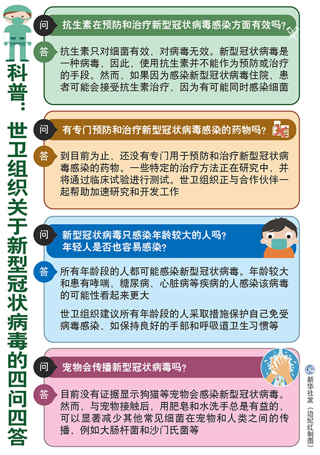 新華社北京2月2日電 面對(duì)當(dāng)前新型冠狀病毒感染肺炎疫情,世界衛(wèi)生組織近日在其官方網(wǎng)站,回答了公眾普遍關(guān)心的“抗生素在預(yù)防和治療新型冠狀病毒感染方面有效嗎”等四個(gè)問(wèn)題。新華社記者梳理如下。