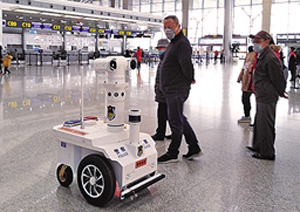 “請大家戴好口罩,注意個人衛(wèi)生,不要前往人流密集場所……”連日來,在廣州、上海、貴陽等地人員較為密集的公共場所,都能看到一個長著“大眼睛”的機器人不知疲倦地來回喊話,這是誕生于廣州市黃埔區(qū)的國內(nèi)首款用于測體溫的巡邏機器人——“千巡警用巡邏機器人”。這款機器人能夠?qū)?米范圍內(nèi)10人同時紅外測溫、誤差不超過0.5攝氏度,有效減少了警務(wù)人員因為人員接觸交叉感染的風險。