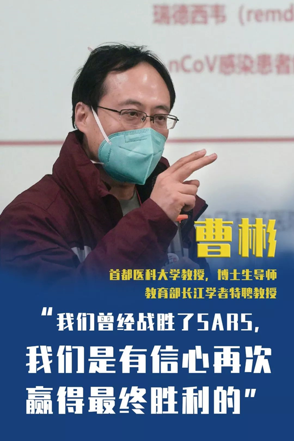 首都醫科大學教授、博士生導師,教育部長江學者特聘教授,中日友好醫院副院長曹彬在疫情暴發前期就作為衛健委特派專家多次奔赴武漢一線。當他得知自己所屬的中日友好醫院將召集醫療隊共赴戰場時,他在呼吸中心的微信群里發了這樣的信息:“我在武漢等你”。受他感召,中日友好醫院呼吸中心的同事們紛紛踴躍報名!