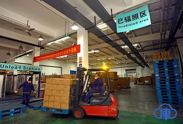下午4點(diǎn)半,記者來到新區(qū)的另一家復(fù)工企業(yè)——天津金鵬源輻照技術(shù)有限公司。在輻照車間調(diào)度室,生產(chǎn)部兩位值班主任錢寧勇和趙志強(qiáng)正在交班,監(jiān)控系統(tǒng)屏幕上數(shù)據(jù)不停跳動,實(shí)時顯示每一拖箱貨物輻照殺菌的進(jìn)程狀態(tài)。