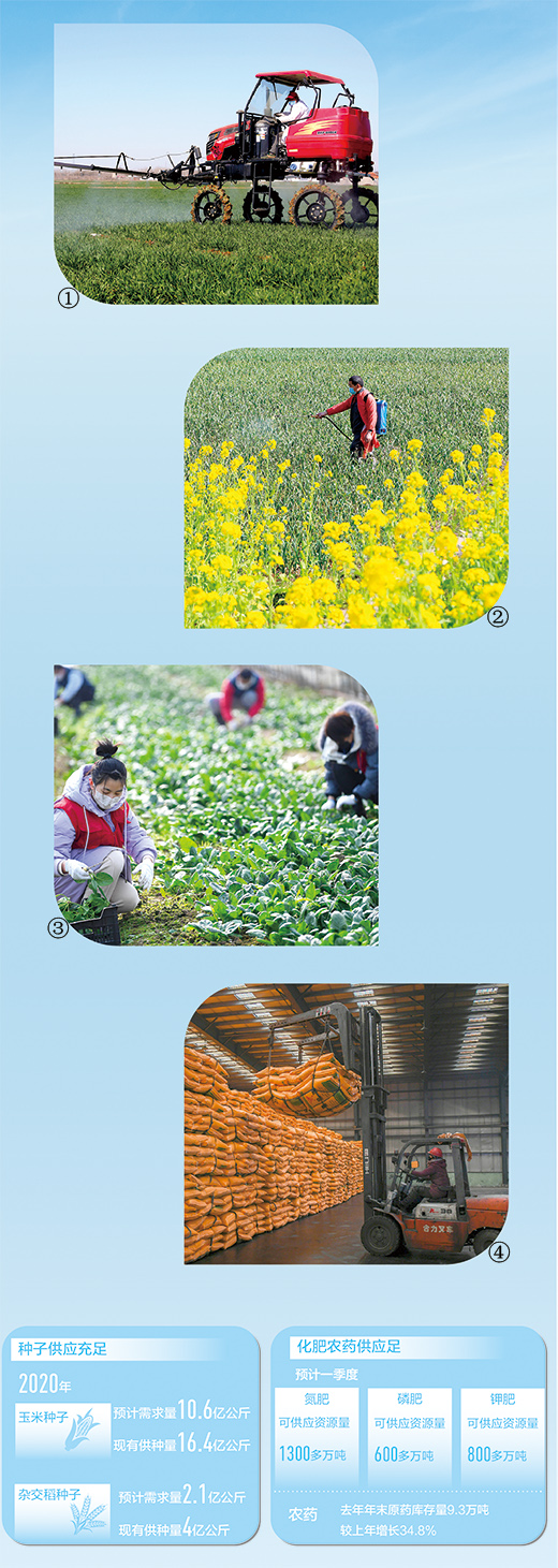 “蝲蝲蛄再咋叫,咱農(nóng)民也要種田。農(nóng)時不等人,春耕農(nóng)資是剛需呀!”河北省霸州市城區(qū)植保服務(wù)部經(jīng)理王革濤說:“這里,種子、化肥、農(nóng)藥品種齊全,紅火著呢!”今年,保供給、保增收、保小康,穩(wěn)住農(nóng)業(yè)基本盤,抓好春耕備耕具有特殊重要性。兵馬動,糧草行,當(dāng)前,備耕物資供應(yīng)充足,保障有力,為春季農(nóng)業(yè)生產(chǎn)的順利推進夯實了基礎(chǔ)。