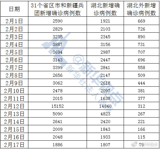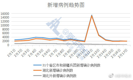 2月17日,31個(gè)省(自治區(qū)、直轄市)和新疆生產(chǎn)建設(shè)兵團(tuán)報(bào)告新增新冠肺炎確診病例1886例,湖北新增確診病例1807例。這就是說,除湖北外的30個(gè)省區(qū)市和新疆生產(chǎn)建設(shè)兵團(tuán)昨日新增確診79例,這是自2月3日來新增病例到達(dá)高點(diǎn)890例以來的首次兩位數(shù)報(bào)告,也是第14連降。?