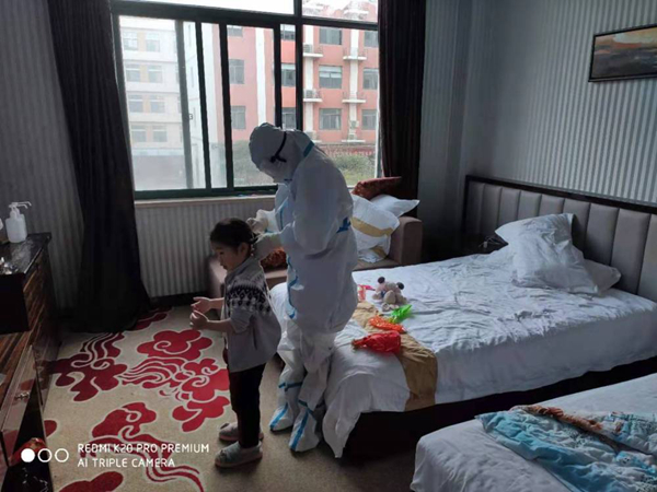 一大家子被隔離,兩個孩子不能丟在家里沒人管,這給安慶市迎江區疫情防控指揮部安置組出了道難題。“誰來照顧已是密切接觸者的兩個年幼的孩子呢?”安慶市迎江區濱江街道黨工委書記趙明來告訴記者,大家商議之后,決定把兩個小家伙送到隔離醫學觀察點,由專業的醫護人員照顧。