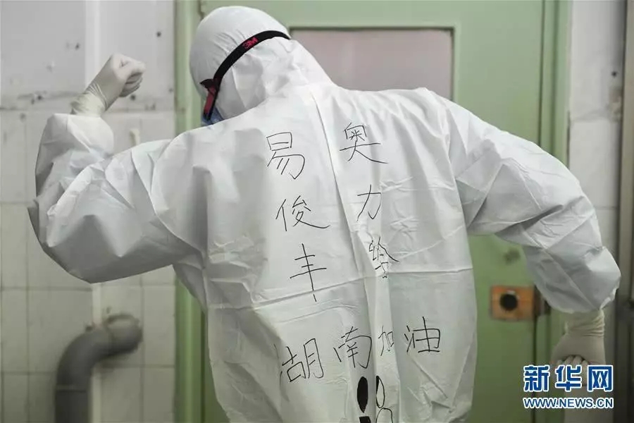 在防護服上寫下了“武漢加油”