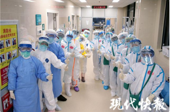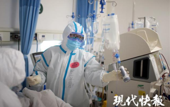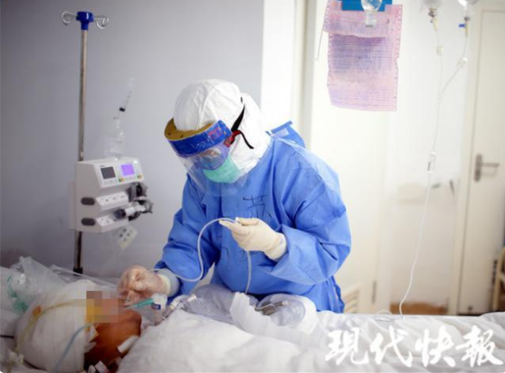 2月18日下午,現代快報記者走進“紅區”——重癥隔離病房里,用鏡頭記錄下一組組“我和你”的故事。