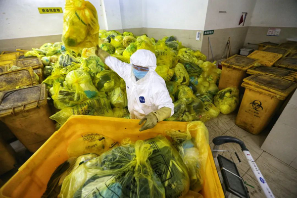 也正是得益于這些逆行而上的志愿者,武漢雷神山醫(yī)院雖然收治了一千多名重癥病人,但是醫(yī)療廢棄物處置工作高效順暢,每日所產生的醫(yī)療廢棄物能夠做到就地處理,“日產日清”。