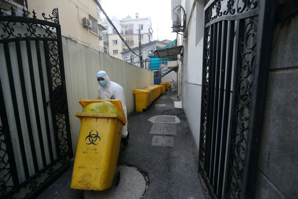 同濟中法新城醫(yī)院的醫(yī)療廢棄物原本放在醫(yī)院地下室的暫存間,使用紅外線和藥水進行消毒,但是隨著新冠肺炎疫情的到來,產生的醫(yī)療廢棄物是以前的近十倍,而且都是感染性的醫(yī)療廢棄物。“以前我們的醫(yī)療廢棄物放在垃圾桶里都會把垃圾桶蓋子蓋上,但是現(xiàn)在醫(yī)療廢棄物實在太多了,不僅蓋子蓋不上,我們還要把垃圾硬塞進垃圾箱,有時候裝有醫(yī)療廢棄物的垃圾袋受擠壓會突然炸開,嚴重威脅我們醫(yī)療廢物處理人員的安全,但是為了盡快收完垃圾,確保院區(qū)所有人的安全,我們只能不惜一切代價了?!?另一位負責醫(yī)療廢棄物的處理工作的周師傅稱。
