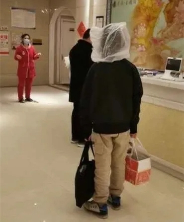 兩點(diǎn)多,留觀點(diǎn)突然來了一位疑似感染者,拎著一點(diǎn)簡單的行李,頭上只罩著一層塑料袋,沒有其他防護(hù)裝備。戴建國主動上前,帶他辦理手續(xù)。