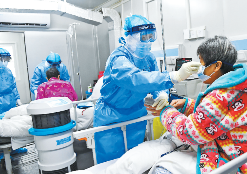 醫(yī)護(hù)人員向表達(dá)感謝的患者回敬軍禮。王皓宇 攝