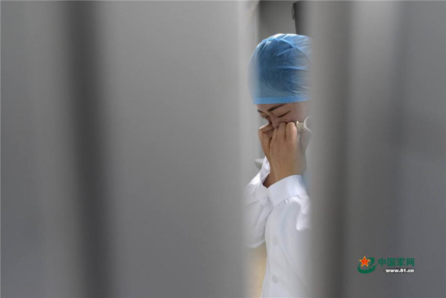 吳亞玲與家人通完電話后忍不住落淚。解放軍報(bào)記者范顯海 攝