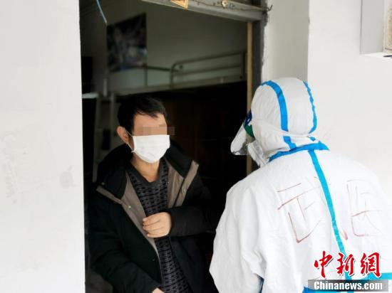 醫(yī)護人員向治愈出院患者了解身體狀況。
