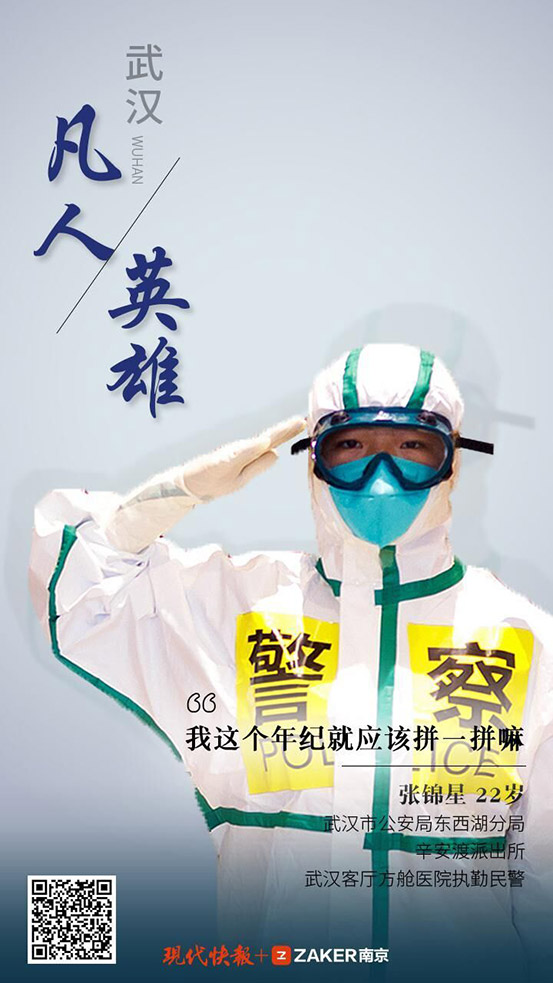 凌晨 2 點,結(jié)束了 6 小時夜班執(zhí)勤的張錦星走出方艙。每天工作 10 小時以上,吃住全在派出所 …… 剛過完 22 歲生日的張錦星,自武漢封城的那天起一直奮戰(zhàn)在防疫一線。2 月 6 日,接到方艙醫(yī)院投入使用的通知后,張錦星主動請戰(zhàn),進駐方艙核心區(qū)執(zhí)勤。" 我這個年紀(jì)就應(yīng)該拼一拼嘛!"