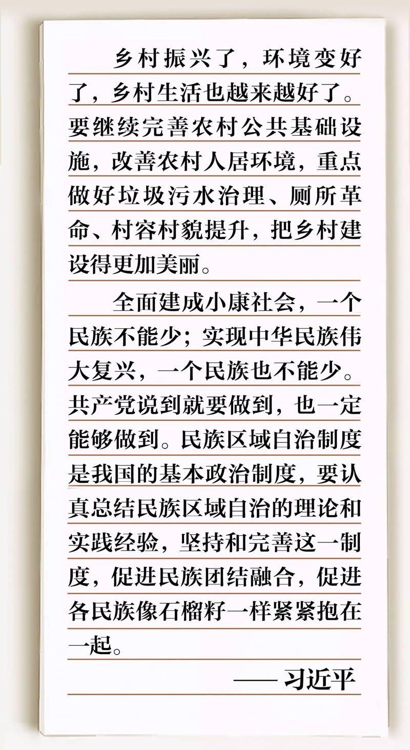 習近平總書記指出:“各族人民親如一家,是中華民族偉大復興必定要實現的根本保證。”馬鞍山村脫貧攻堅動力不竭,村民生活蒸蒸日上,既源于黨和政府的好政策,更是因為各族群眾同心同德、同心同向。這也啟示我們:56個民族攜手同行,像石榴籽一樣緊緊抱在一起,鑄牢中華民族共同體意識,就能形成勇往直前、無堅不摧的強大力量。