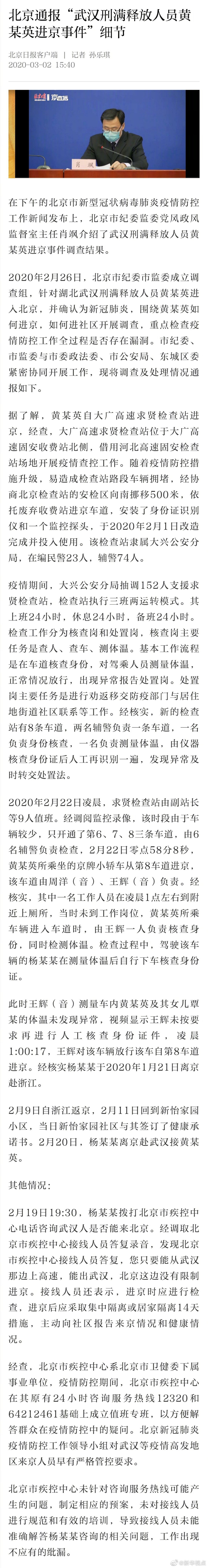 北京通報“武漢刑滿釋放人員黃某英進京事件”細節
