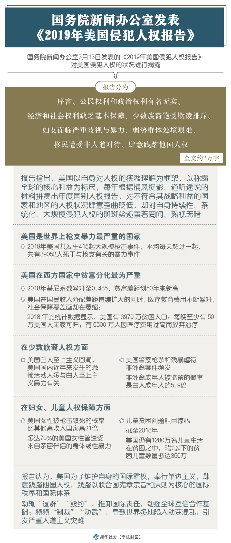 國務院新聞辦公室發表《2019年美國侵犯人權報告》-新華網