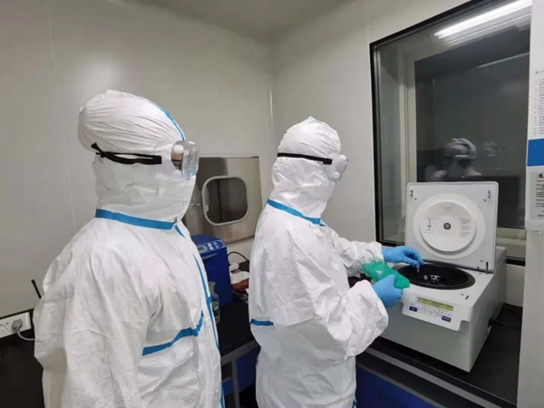 天津市河西區(qū)疾控中心核酸檢測實驗室工作人員在病毒檢測中進行核酸提取。新華社發(fā)
