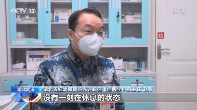 湖北省婦幼保健院光谷院區(qū)重癥醫(yī)學(xué)科副主任 趙榮:他隨時(shí)都有可能處在一種搶救狀態(tài),一個(gè)班4個(gè)醫(yī)生6個(gè)護(hù)士,甚至要6個(gè)護(hù)士進(jìn)紅區(qū),大家從進(jìn)來(lái)到出去沒(méi)有一刻在休息。
