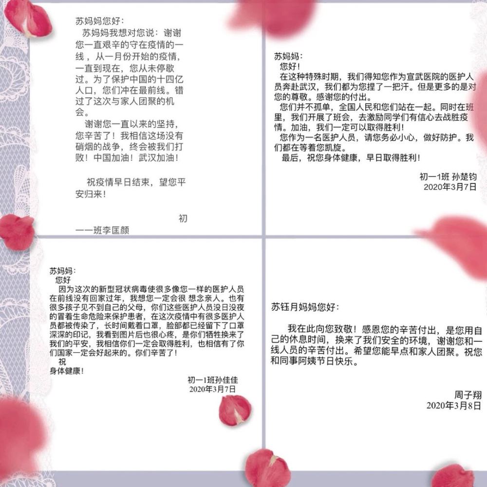 今天,我收到了來自女兒和她所在的北京市第十五中學初一(1)班同學們的38封慰問信。孩子們質樸的話語和真摯的問候,真是讓我意外又驚喜,感動又感激,謝謝大家的祝福與鼓勵!