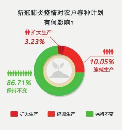 調(diào)查顯示,86.71%的農(nóng)戶表示春種計劃保持不變,只有18戶(占3.23%)農(nóng)戶表示將擴大生產(chǎn),而56戶(占10.05%)農(nóng)戶表示將縮減生產(chǎn)。(見圖3)