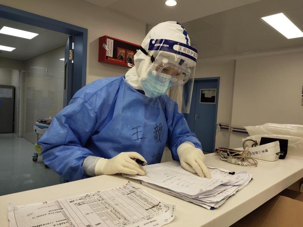 ?圖為北京大學(xué)人民醫(yī)院馳援武漢醫(yī)療隊(duì)的王毅在工作中。